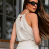 Nossa blusa no estilo nadador em alfaiataria é perfeita para quem deseja uma blusa básica, sofisticada e que não tenha transparência.